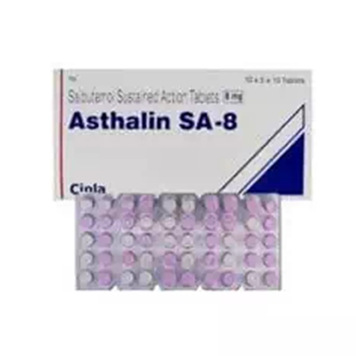 アスタリンSA-8(Asthalin SA-8)は、サルブタモール硫酸塩8mgを含有する徐放性錠剤です。気管支喘息や慢性閉塞性肺疾患(COPD)の長期管理に使用され、気道を広げて呼吸を改善します。医師の指示に従い服用してください。