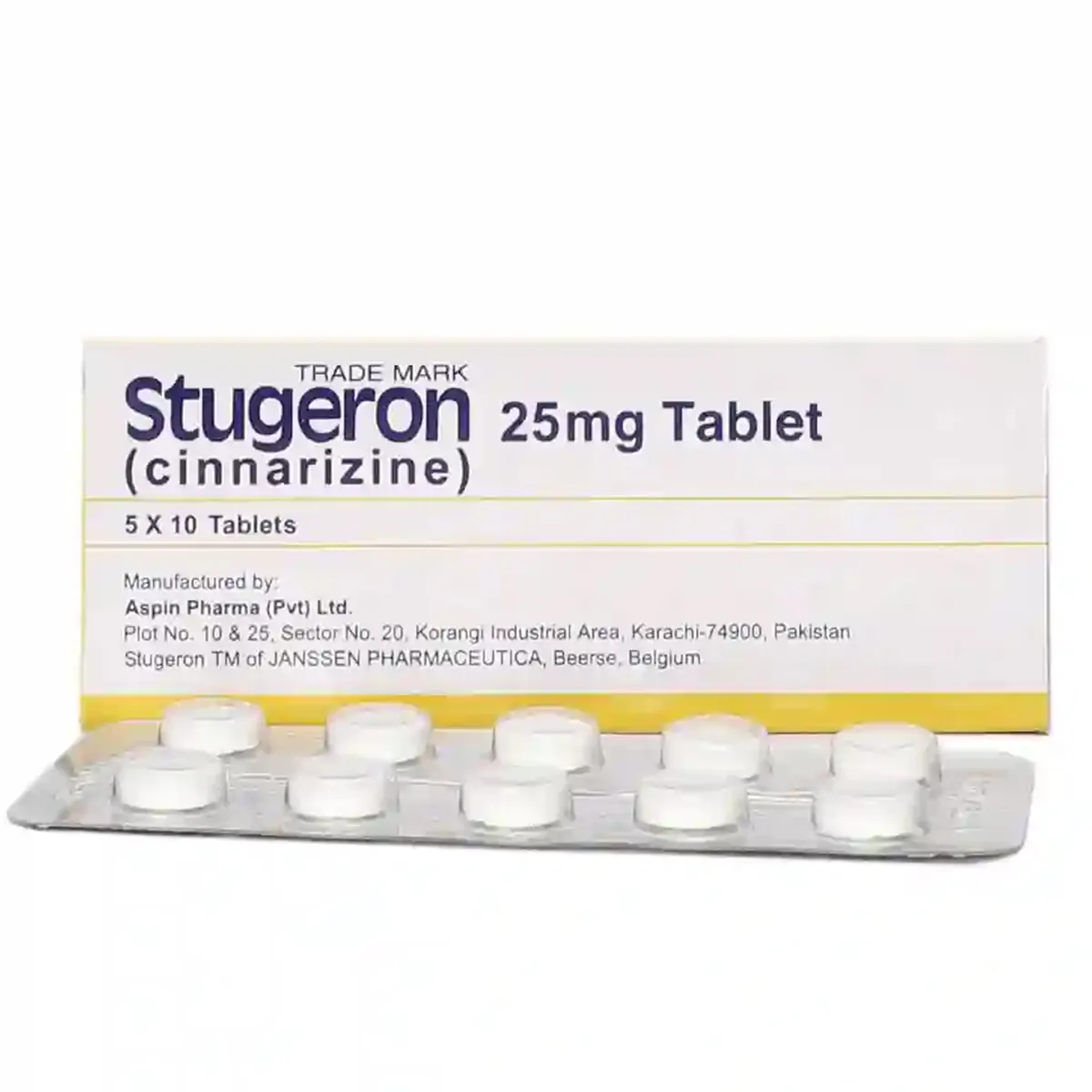 スチュゲロン25(STUGERON 25)は、シンナリジンを主成分とする抗めまい薬で、血流改善作用と前庭神経の抑制により、乗り物酔い、めまい、耳鳴り、メニエール病などの症状を緩和します。脳の血行を促すことで平衡感覚の安定にも寄与します。副作用としては、眠気、口渇、胃の不快感、まれに倦怠感や体重増加などが報告されており、服用時は運転などの注意が必要です。