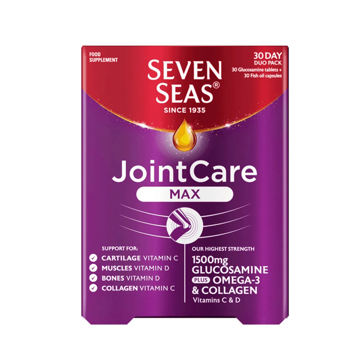 ジョイントケアマックス(JointCare MAX)は、グルコサミン(1500mg)、Omega-3、コラーゲン、ビタミンCおよびDを主成分とするサプリメントです。関節、軟骨、筋肉、骨、コラーゲンの健康をサポートします。医師と相談の上、1日1錠と1カプセルを水と一緒に摂取してください。副作用として、まれに軽い胃腸不調が報告される場合があります。