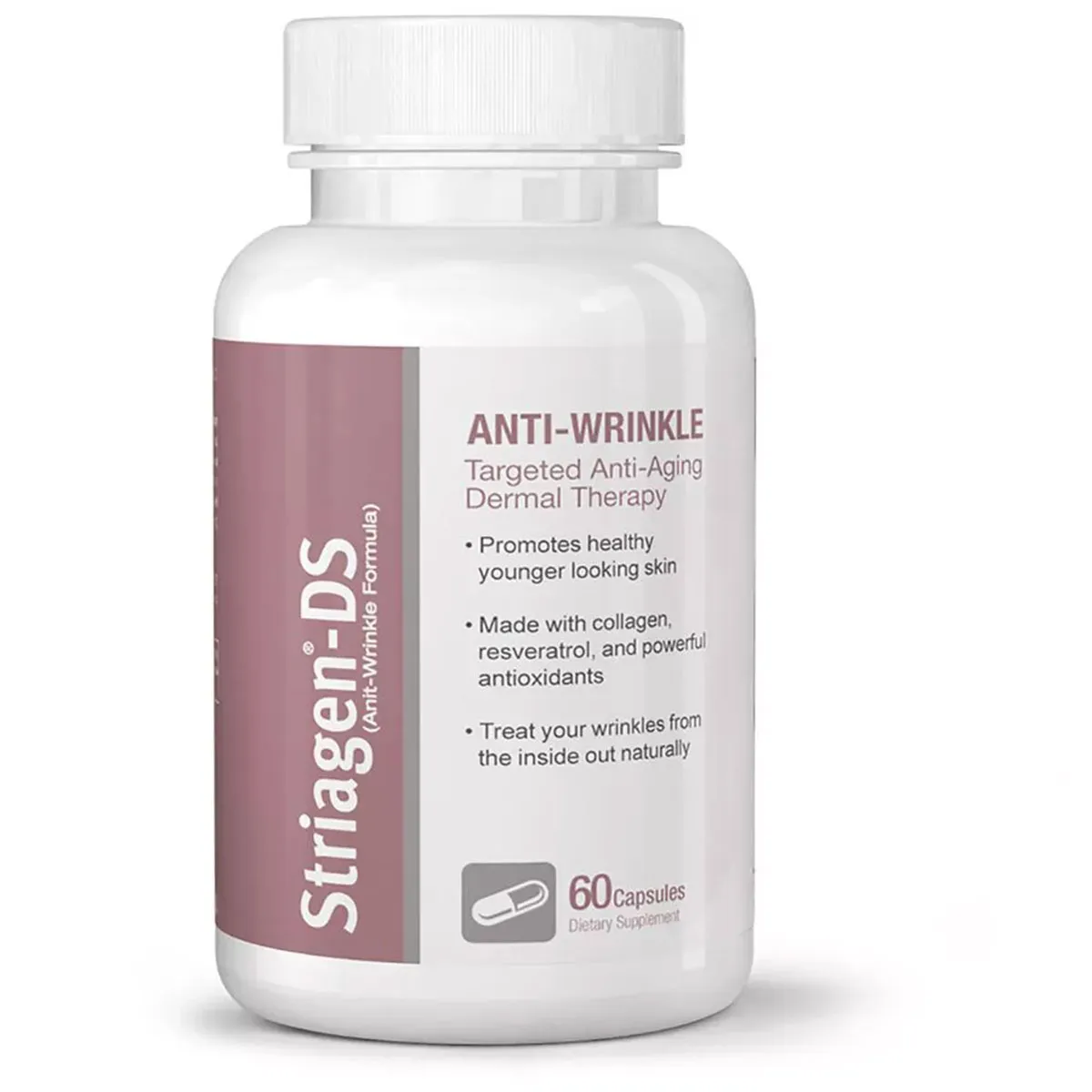 ストリアゲンDS アンチウィンクルフォーミュラ(Striagen-DS Anti-Wrinkle)は、コラーゲン、レスベラトロール、強力な抗酸化成分を主成分としたサプリメントです。肌の弾力と潤いを保ち、シワやエイジングサインの改善を内側からサポートします。副作用は少ないとされていますが、ごくまれに胃の不快感やアレルギー反応が起こる可能性があります。