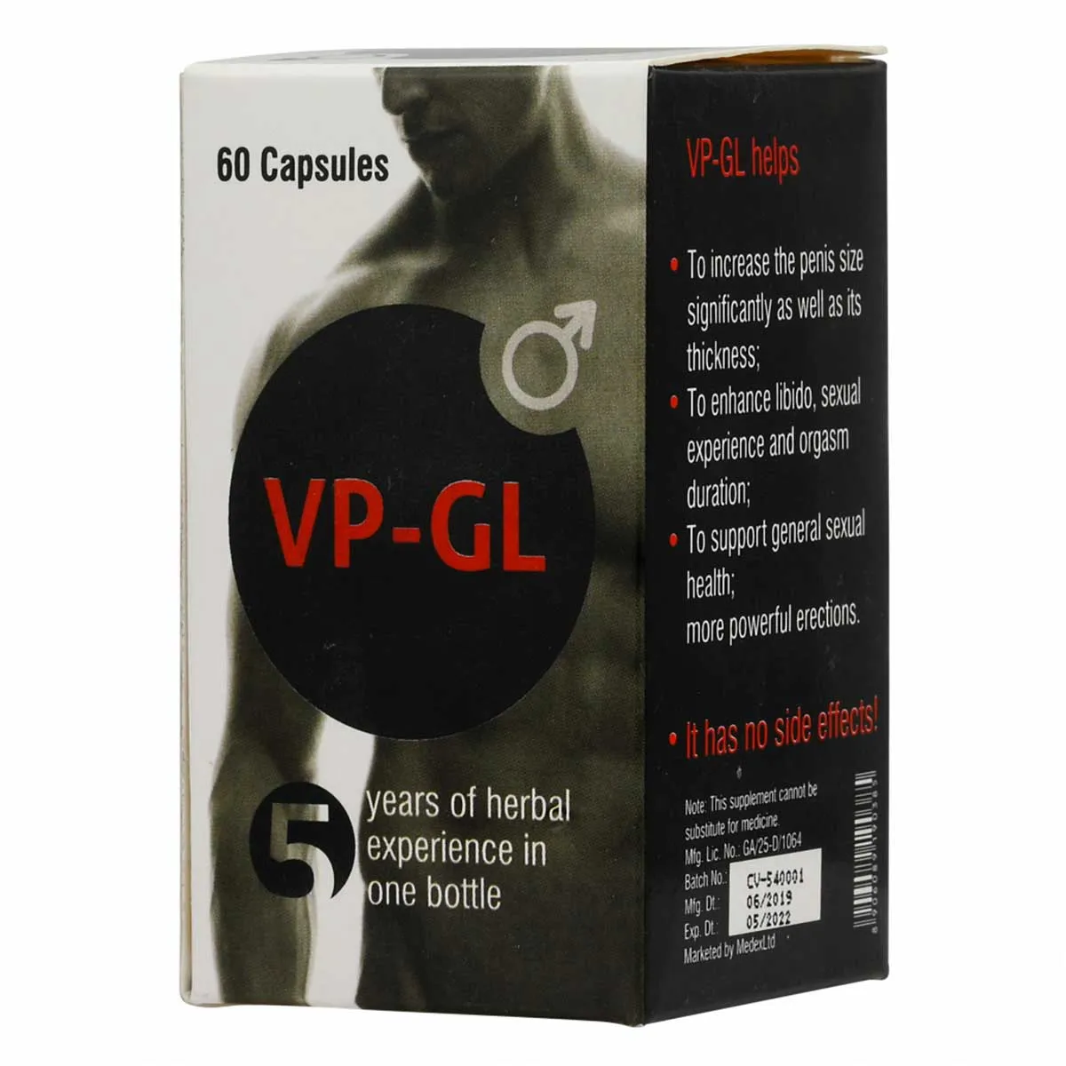VP-GLは、ペニスのサイズや厚みを増大させ、性欲や性的体験、オーガズムの持続時間を向上させ、性機能全般や強力な勃起をサポートするハーブサプリメントです。天然成分を厳選して配合されています。副作用として特に報告されていませんが、使用前に医師に相談することをお勧めします。